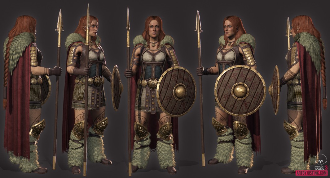 Journal Category 3D Artist JustinKirkwood from 55,350 polys 6 x 2k texture sets. (hair/fur, head, body, spear, shield, cape) Character based on For Honor concept by Remko Troost. Log in to post comments